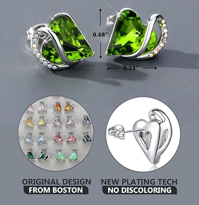 أقراط نسائية من ليفايل بتصميم قلب اللانهاية، مزينة بكريستال حجر الميلاد وأحجار علاجية، بلون فضي أنيق. هدية مثالية لا تسبب الحساسية وتأتي مع علبة هدايا أنيقة.