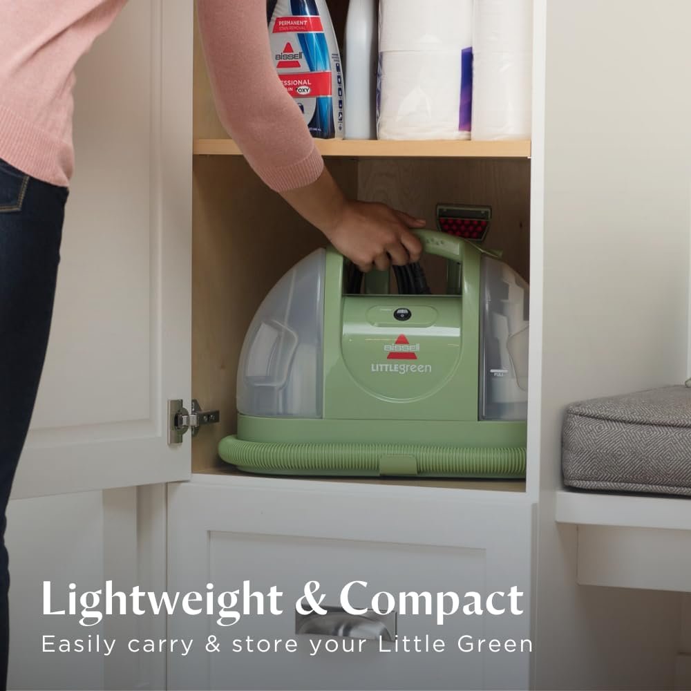 جهاز بيسيل ليتل جرين (4098K) لتنظيف السجاد والمفروشات، محمول وعملي، يزيل البقع الصعبة بفعالية دائمة. مثالي للاستخدام على الأرائك، مقاعد السيارات، والسجاد بمختلف أنواعه.