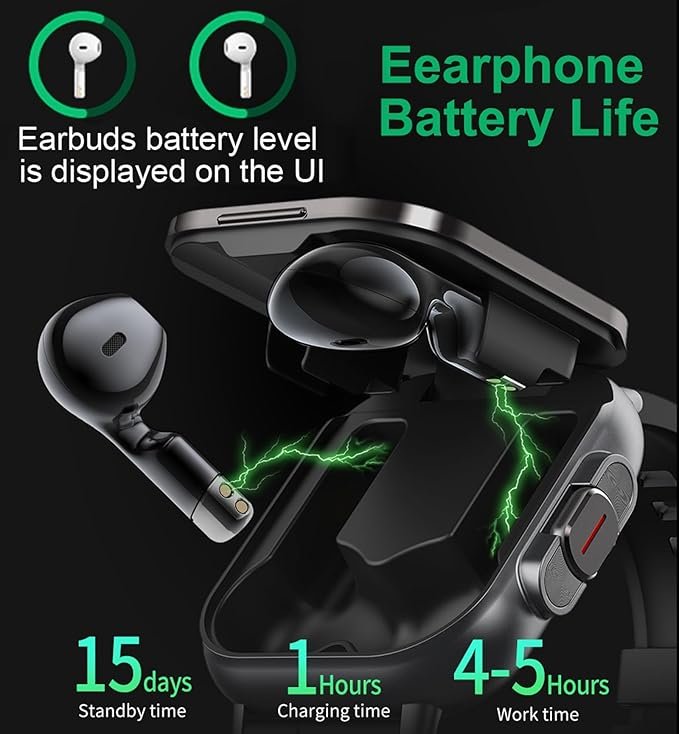 ساعة ذكية للرجال من Azoni – ساعة متعددة المهام مزودة بسماعات أذن بلوتوث لاسلكية، تتيح لك إجراء المكالمات والرد عليها بسهولة. تأتي مع ميزات تتبع اللياقة البدنية ومراقبة النوم، ومتوافقة مع أنظمة iOS وAndroid لتمنحك تجربة ذكية متكاملة.