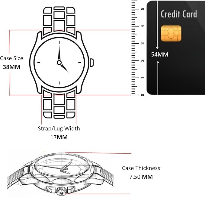 الإغلاق: مشبك Foldover Clasp المادة: هيكل من الستانلس ستيل المقاوم للصدأ الأبعاد: قطر 36 ملم – سمك 7.55 ملم السوار: ستانلس ستيل باللون الذهبي، بعرض 7.05 ملم الوزن: 78 جرام الحركة: كوارتز عالية الدقة مقاومة الماء: حتى 30.59 مترساعة عملية وعصرية تجمع بين التصميم الأنيق والعملية اليومية، مناسبة للاستخدام اليومي والمناسبات.