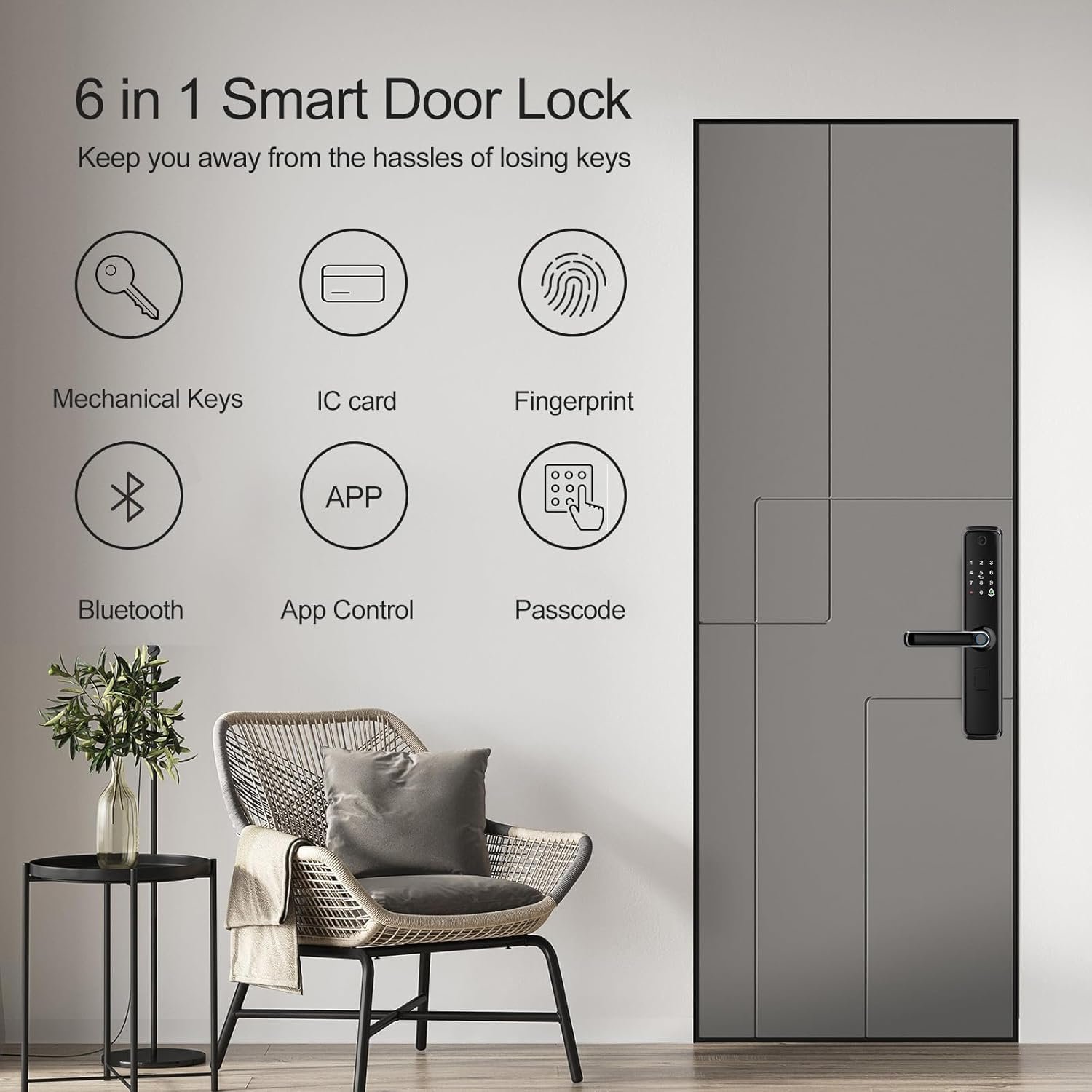 قفل إلكتروني متطور يجمع بين بصمة الإصبع وميزة الدخول بدون مفتاح لمزيد من الراحة والأمان. يأتي مع مقبض مدمج ولوحة مفاتيح رقمية، إضافة إلى بطارية تدعم تقنية تويا Wi-Fi للتحكم الذكي عن بُعد. تصميم أنيق وعصري بلون أسود مثالي لجميع الأبواب.