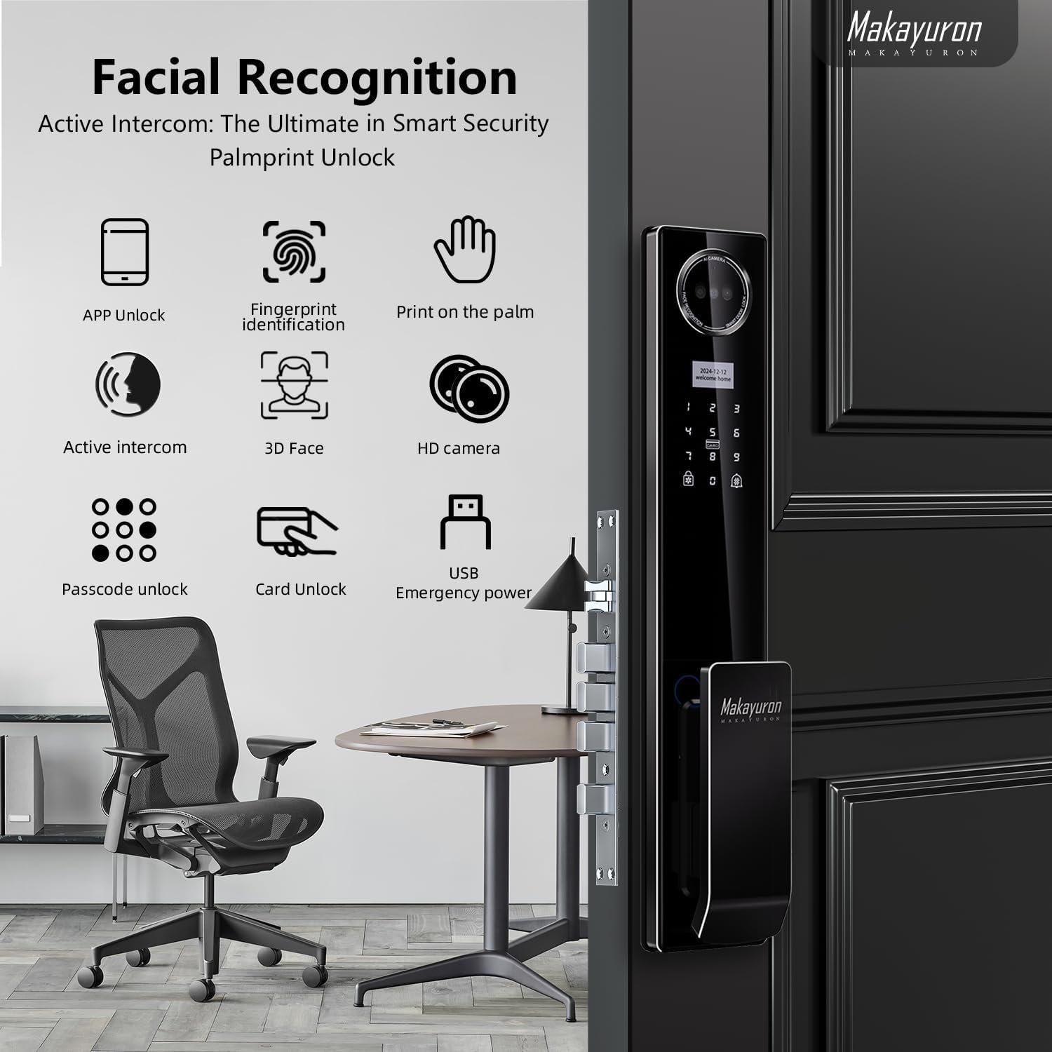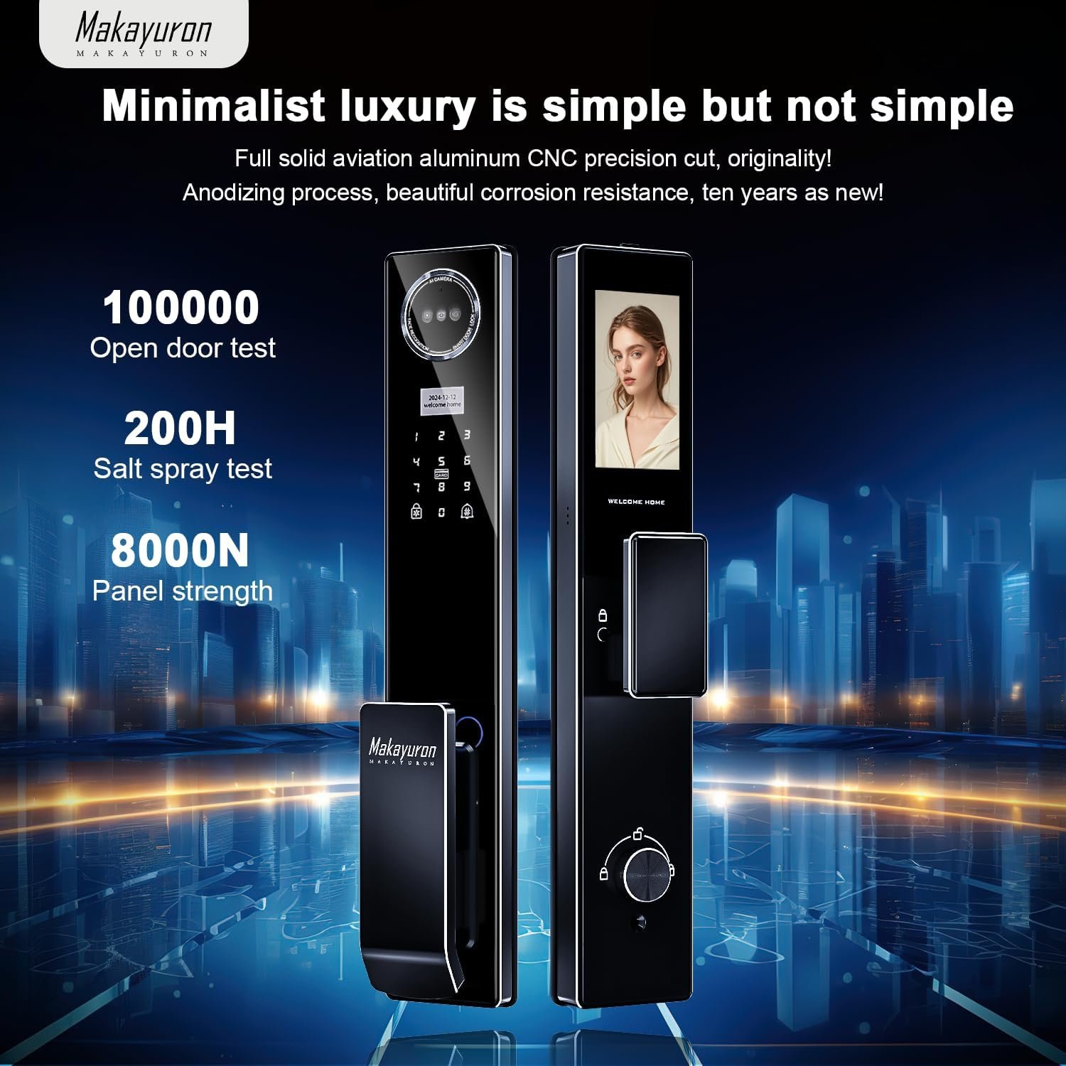 قفل متطور مصنوع بالكامل من الألومنيوم مع تقنية الواي فاي، مزود ببطارية قوية بسعة 5000mAh. يدعم طرق فتح متعددة تشمل التعرف على الوجه، بصمة الإصبع، كلمة المرور، وتطبيق Tuya للتحكم الذكي عن بُعد، بالإضافة إلى زر 6068 لتسهيل الاستخدام والأمان.