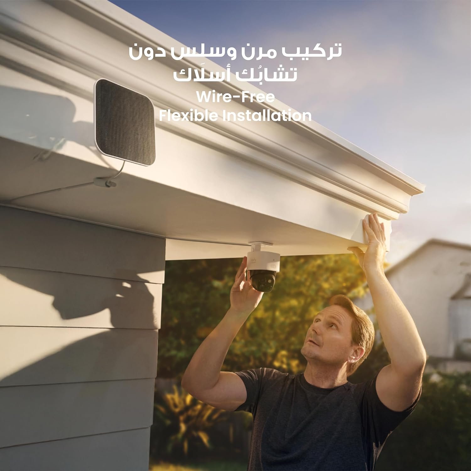 تعمل بالطاقة الشمسية مع تغطية بانورامية 360 درجة لضمان مراقبة شاملة بلا أي مناطق عمياء، تدعم الاتصال عبر واي فاي 2.4 جيجاهرتز وتوفر استخداماً مجانياً بدون رسوم اشتراك. متوافقة مع HomeBase 3، وتأتي بتصميم أنيق باللونين الأسود والأبيض.
