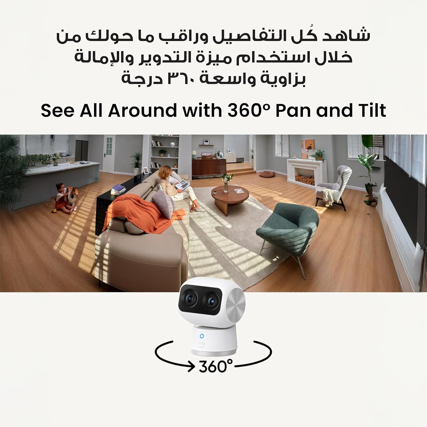 تأتي بدقة 4K UHD مزدوجة مع إمكانية التكبير حتى 8 مرات ودوران PTZ بزاوية 360°، مما يوفر تغطية شاملة للتصوير. مثالية لمراقبة الأطفال، الحيوانات الأليفة، والكلاب، إضافة إلى تعزيز أمان المنزل. تدعم اتصال واي فاي ثنائي النطاق 6، وتعمل بشكل لاسلكي باللون الأبيض الأنيق.