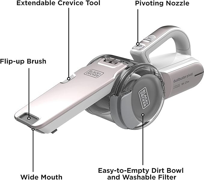 مكنسة كهربائية محمولة لاسلكية من بلاك + ديكر، موديل PV1820LRGP-GB، تعمل ببطارية ليثيوم أيون 18 فولت (1.5 أمبير/ساعة)، بقوة شفط 27.5 واط هوائي، سعة وعاء 440 مل، مزودة بفلتر ثلاثي ودوران 200 درجة، باللون الذهبي الوردي.