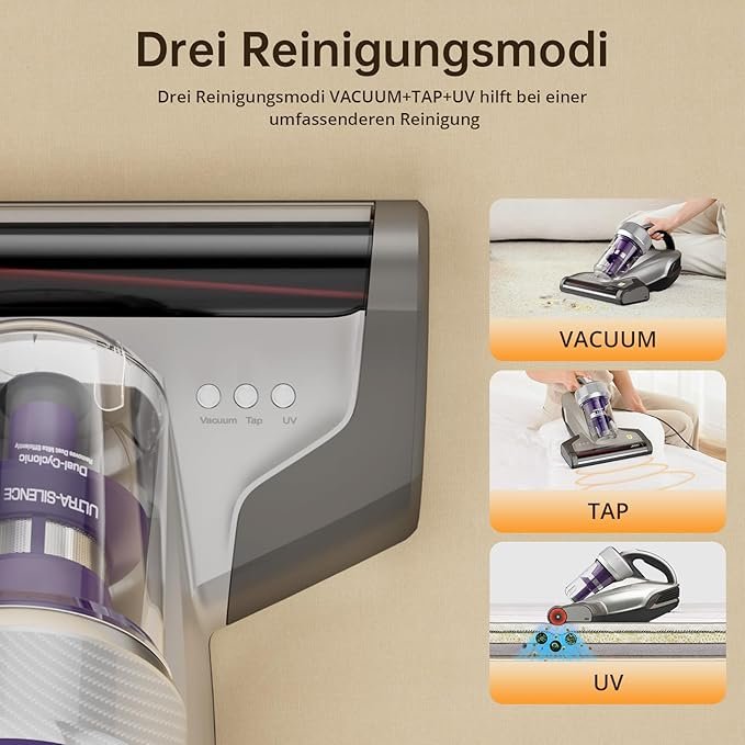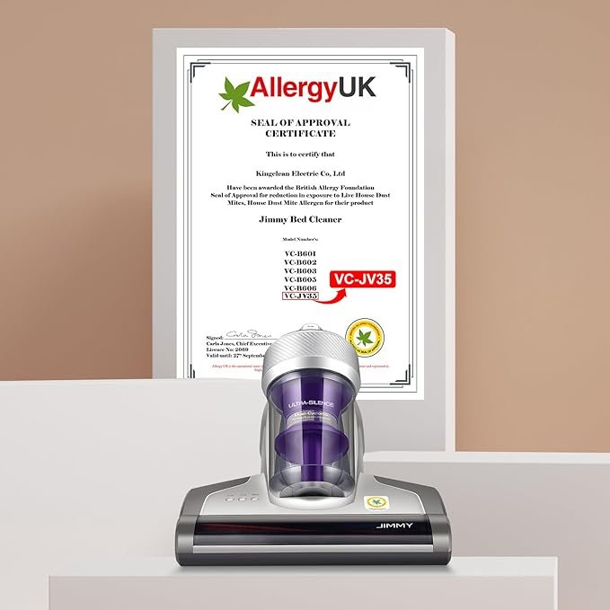 مكنسة يدوية من جيمي JV35 بقدرة 700 واط، مزودة بضوء UV-C ومضادة لعث الغبار، توفر قوة شفط تصل إلى 14 كيلو باسكال، مثالية لتنظيف المراتب، الشراشف، الأرائك، الوسائد والأسطح الأخرى.